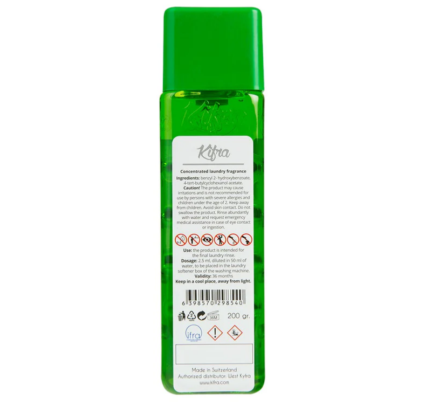 A Kifra koncentrált mosodai parfümöt a ruha végső tisztítására használják. Ez egy olyan termék, amelyet a mosodai tisztítási ciklusra terveztek.