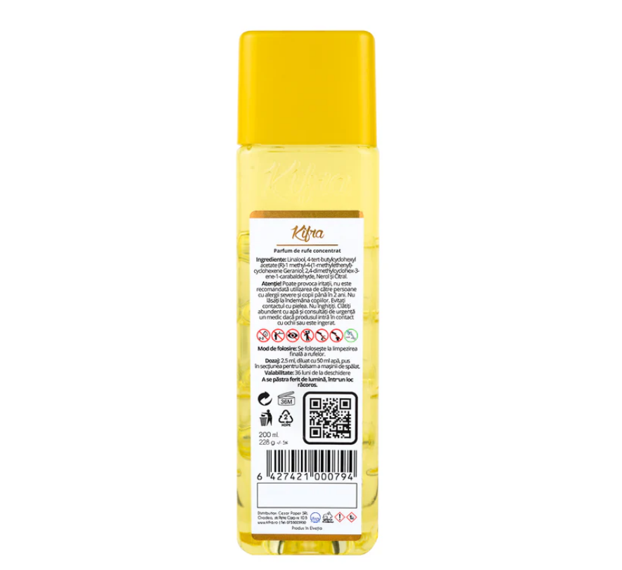 A Kifra koncentrált mosodai parfümöt a ruha végső tisztítására használják. Ez egy olyan termék, amelyet a mosodai tisztítási ciklusra terveztek.