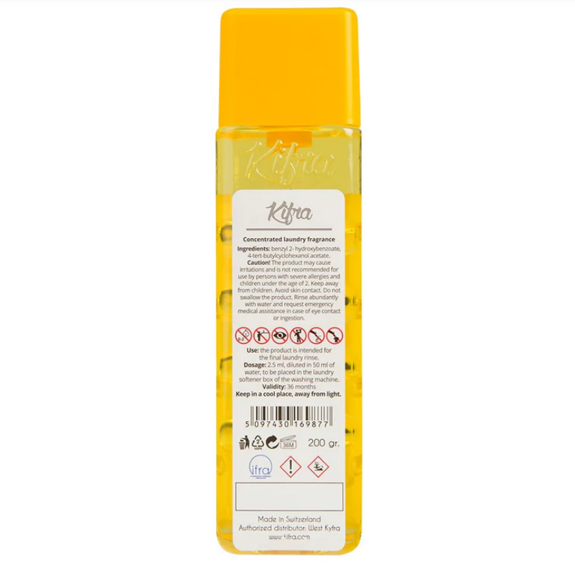 A Kifra koncentrált mosodai parfümöt a ruha végső tisztítására használják. Ez egy olyan termék, amelyet a mosodai tisztítási ciklusra terveztek.