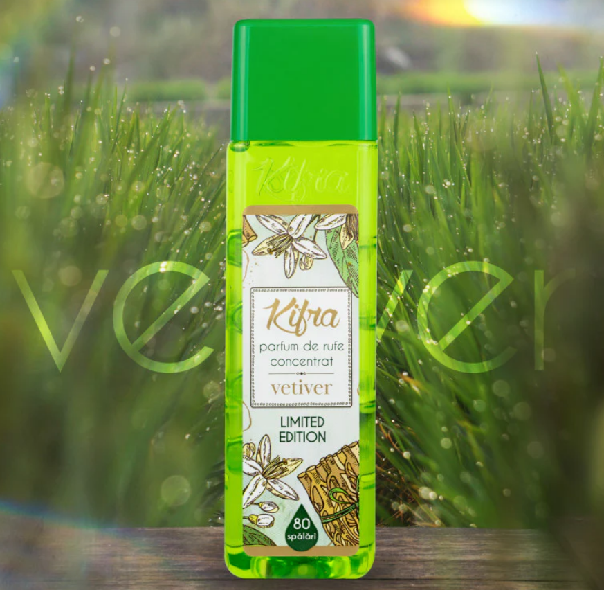 A kikapcsolódás és a nyugalom oázisa, a Kifra Vetiver Koncentrált Mosóparfüm Limited Edition keleties hangulatú illatos utazásra viszi Önt. A citrusos árnyalatokkal, fás és enyhén füstös jegyekkel a Vetiver India pezsgését viszi be otthonába egy felejthetetlen illaton keresztül, amely kihozza Önt és őszi ruhatárát az anonimitásból!