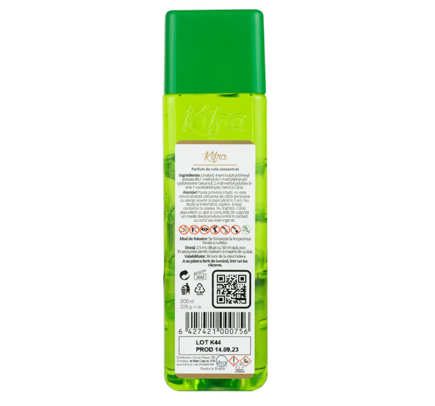 A Kifra koncentrált mosodai parfümöt a ruha végső tisztítására használják. Ez egy olyan termék, amelyet a mosodai tisztítási ciklusra terveztek.